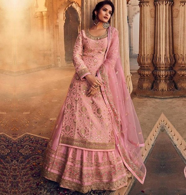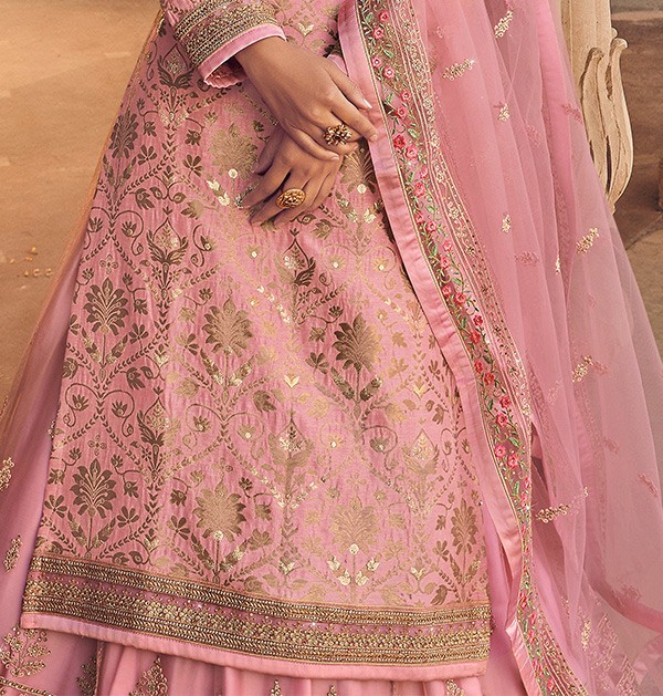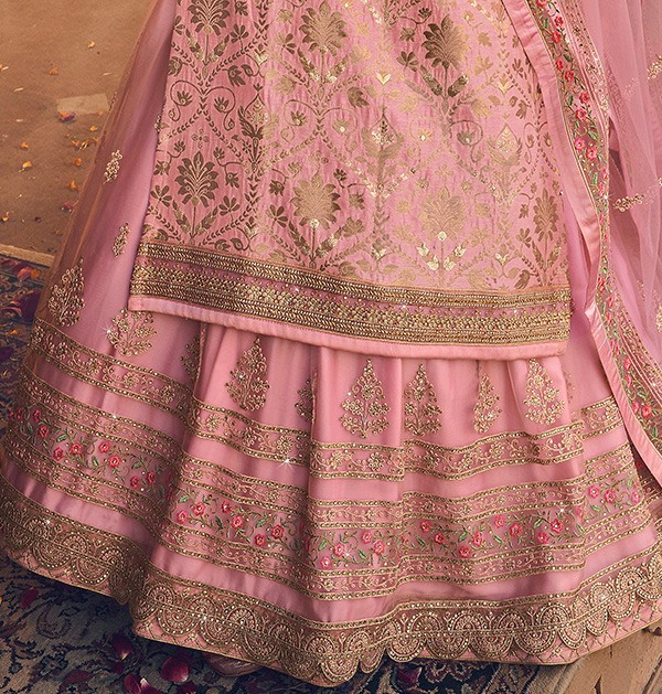 Light Pink Designer Embroidered Kurti Style Lehenga