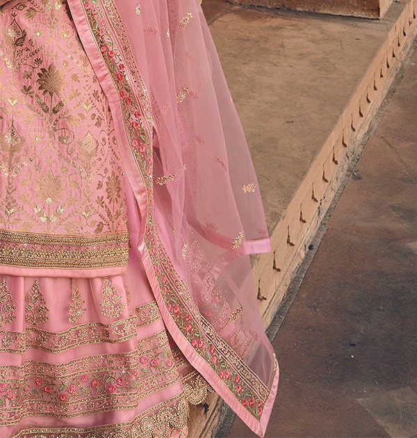 FABRIC : Blouse (Top) – Pure Dola Jacquard, Lehenga (Bottom) – Net, Inner – Heavy Satin, Dupatta – Net